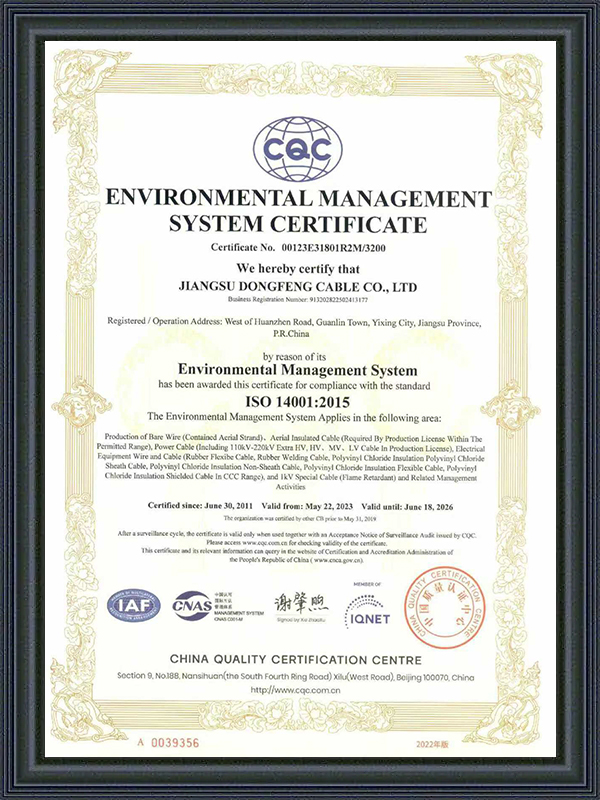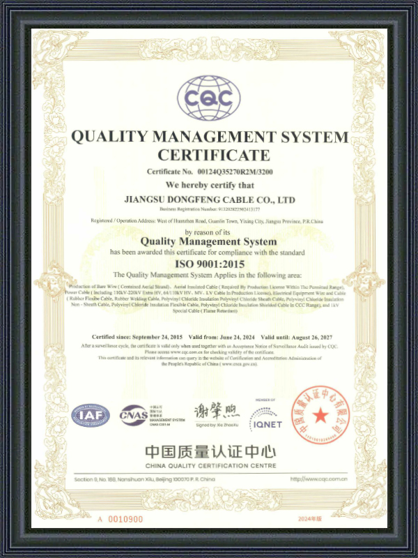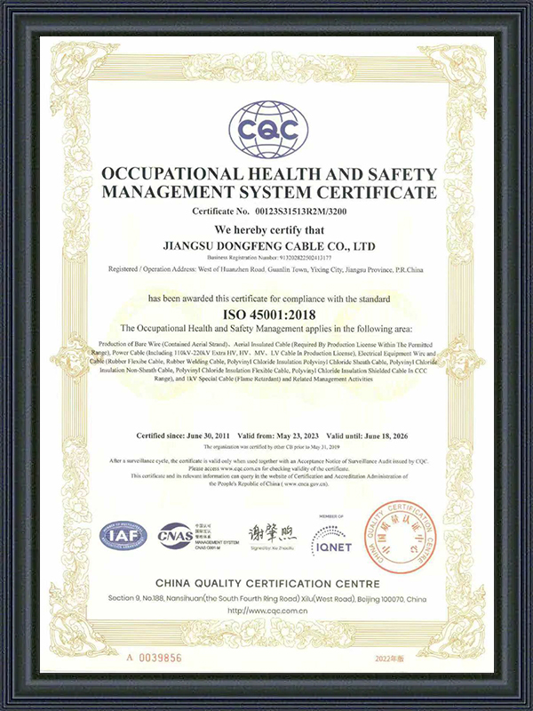 Jiangsu Dongfeng Cable Co., Ltd. grundades 1988. Som Kina Tillverkare av Elektrisk Tråd och Fabrik för Styrkablar är ett nationellt högteknologiskt företag som integrerar R&D, produktion och försäljning av olika typer av trådar och kablar. Det har betygsatts som ett ‘Nationell Grön Fabrik’, ‘Jiangsu Provins Specialiserat, Specialiserat, Innovativt och Nytt Företag’, ‘Jiangsu Provins Kvalitets- och Ärlighetsföretag’, ‘AAA Kreditföretag’, och ‘Nationellt Användarnöjdhetsföretag’. Vi erbjuder Anpassad Elektrisk Tråd och Kabel.